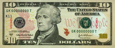 One ten dollar bill equals 5 one dollar bills plus 1 five dollar bill